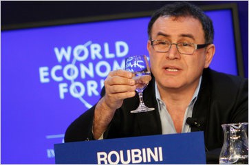 Nouriel Roubini, promovat în mass-media sub pseudonimul “Doctor Dezastru” (n.t. Doctor Doom) profesor de economie la Stern School of Business (New York University), autor al cărţii “Economia crizelor” prin intermediul căreia a analizat similarităţile crizelor economice ale ultimelor secole pornind de la criza bulbilor de allele din Olanda până la criza din 2008 denumită Marea Recesiune. Roubini a vorbit public despre pericolul financiar spre care se îndrepta economia globală şi de factorii care determină aceste dezechilibre începând cu anii 2000 înţelegând legăturile descoperite de Robert Shiller (profesor de economie la Facultatea Yale, laureat al Premiului Nobel in Stiinte Economice,) care a tras semnalul de alarmă în ceea ce priveşte creditele locuinţelor, Raghuram Rajan (Guvernatorul Băncii Centrale a Indiei) atenţiona economiştii şi formatorii de politici publice reuniţi la Jackson Hole în 2005 în cadrul prelegerii “The Greenspan Era: Lessons for the Future”, că modul în care sunt remuneraţi operatorii bancari şi cei de investiţii financiare va conduce la asumarea de riscuri mari şi la creşterea gradului de îndatorare a capitalului propriu.